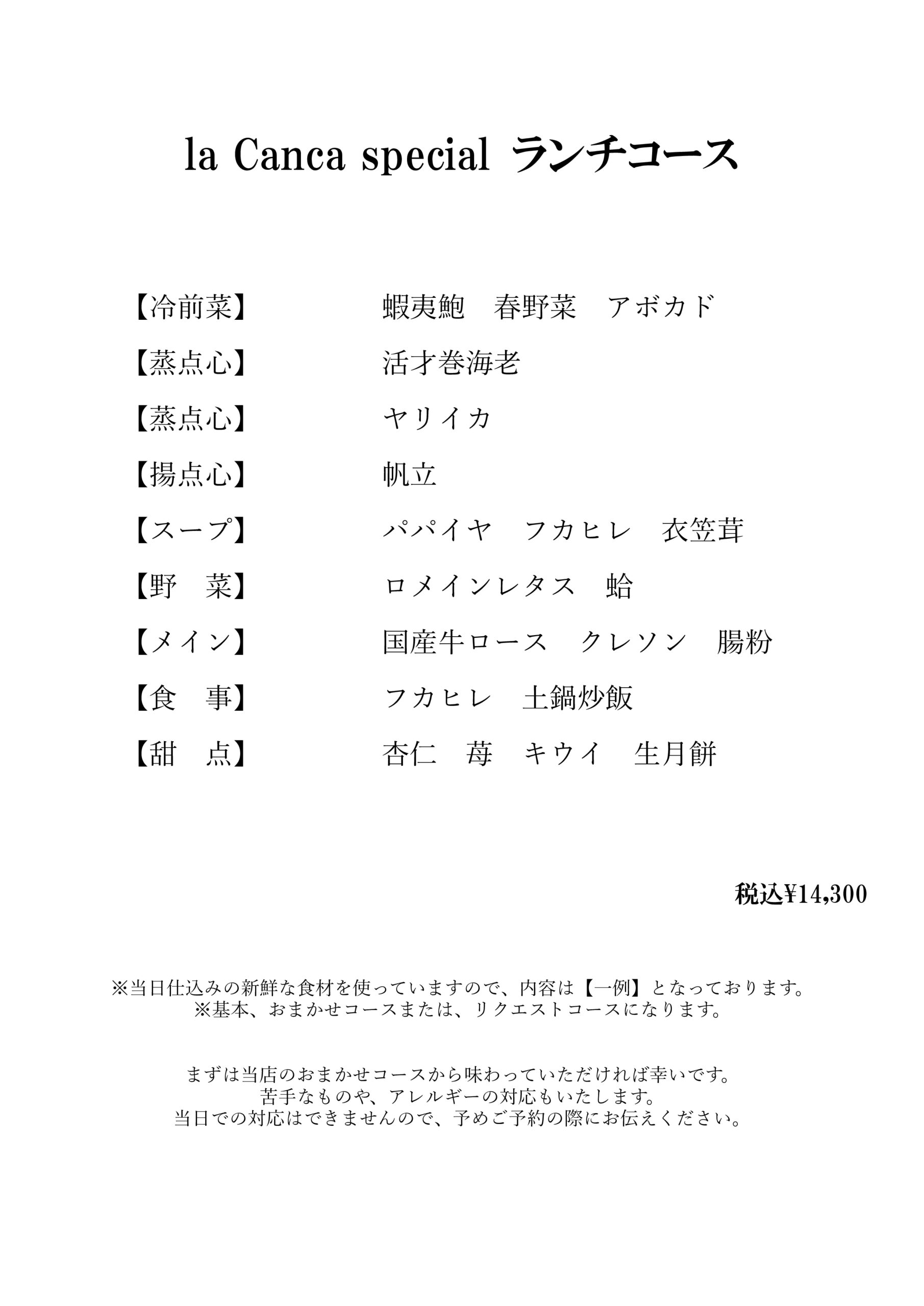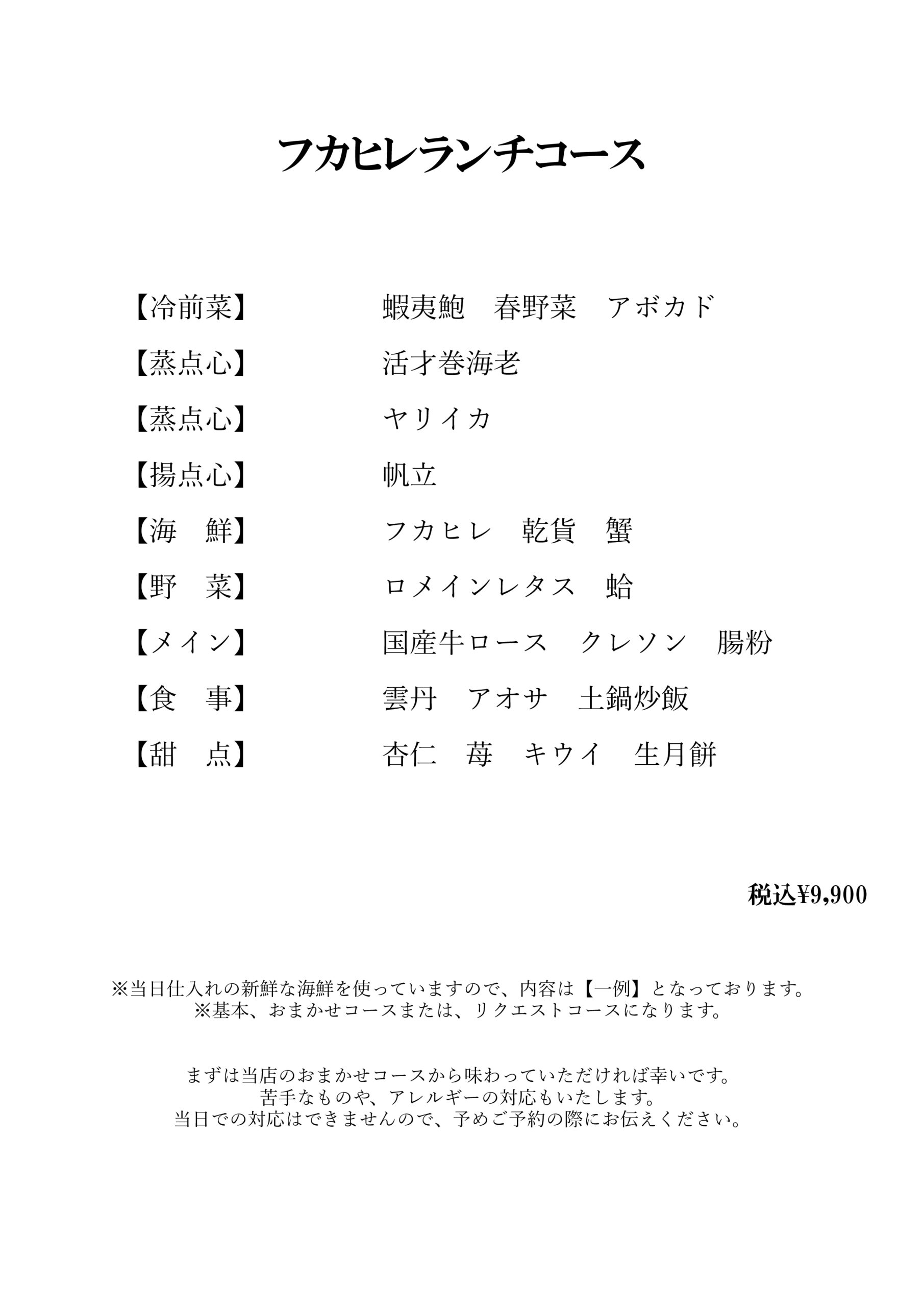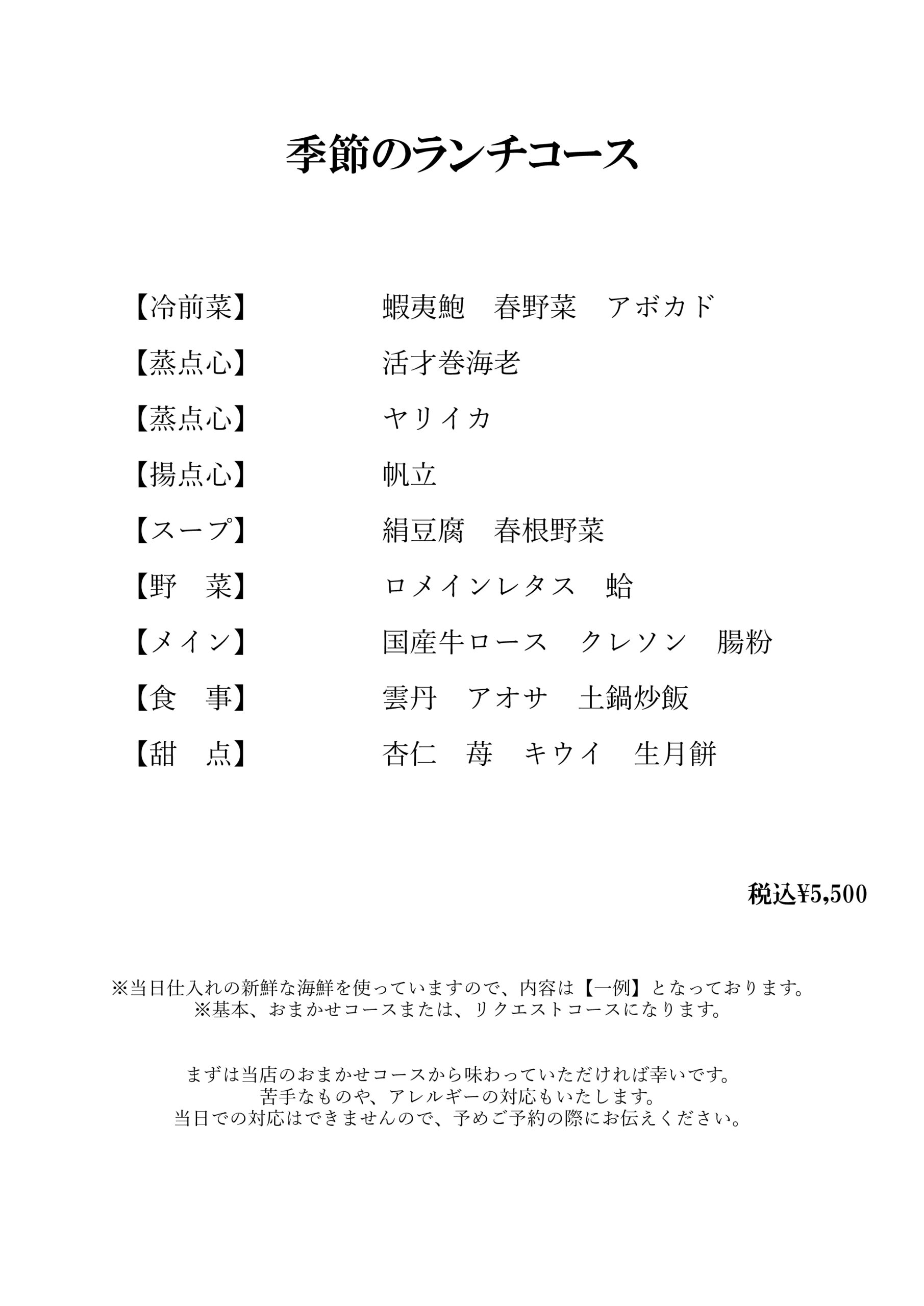 (ランチ、ディナーともに、上記金額に別途サービス料10%を頂戴いたします。)