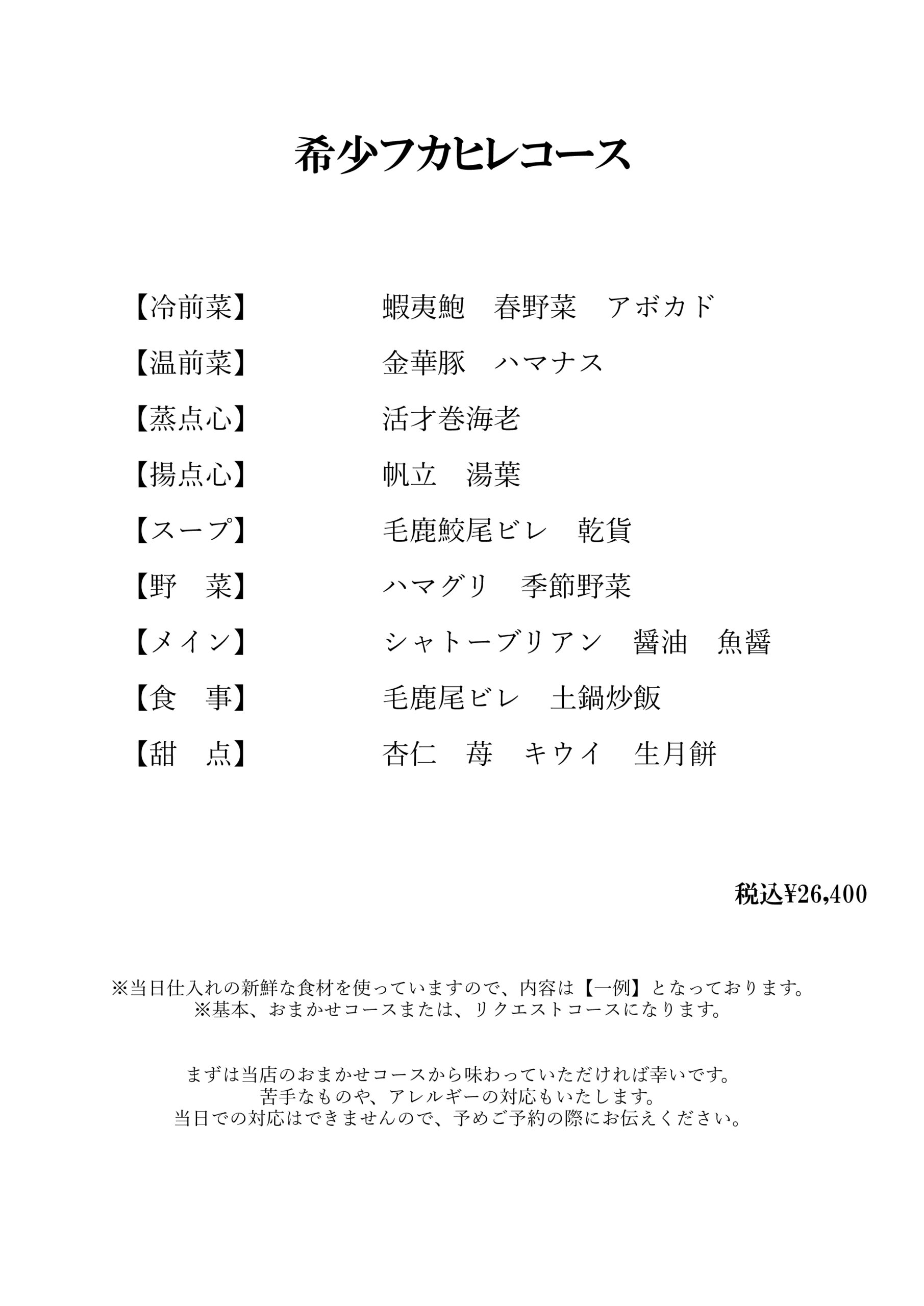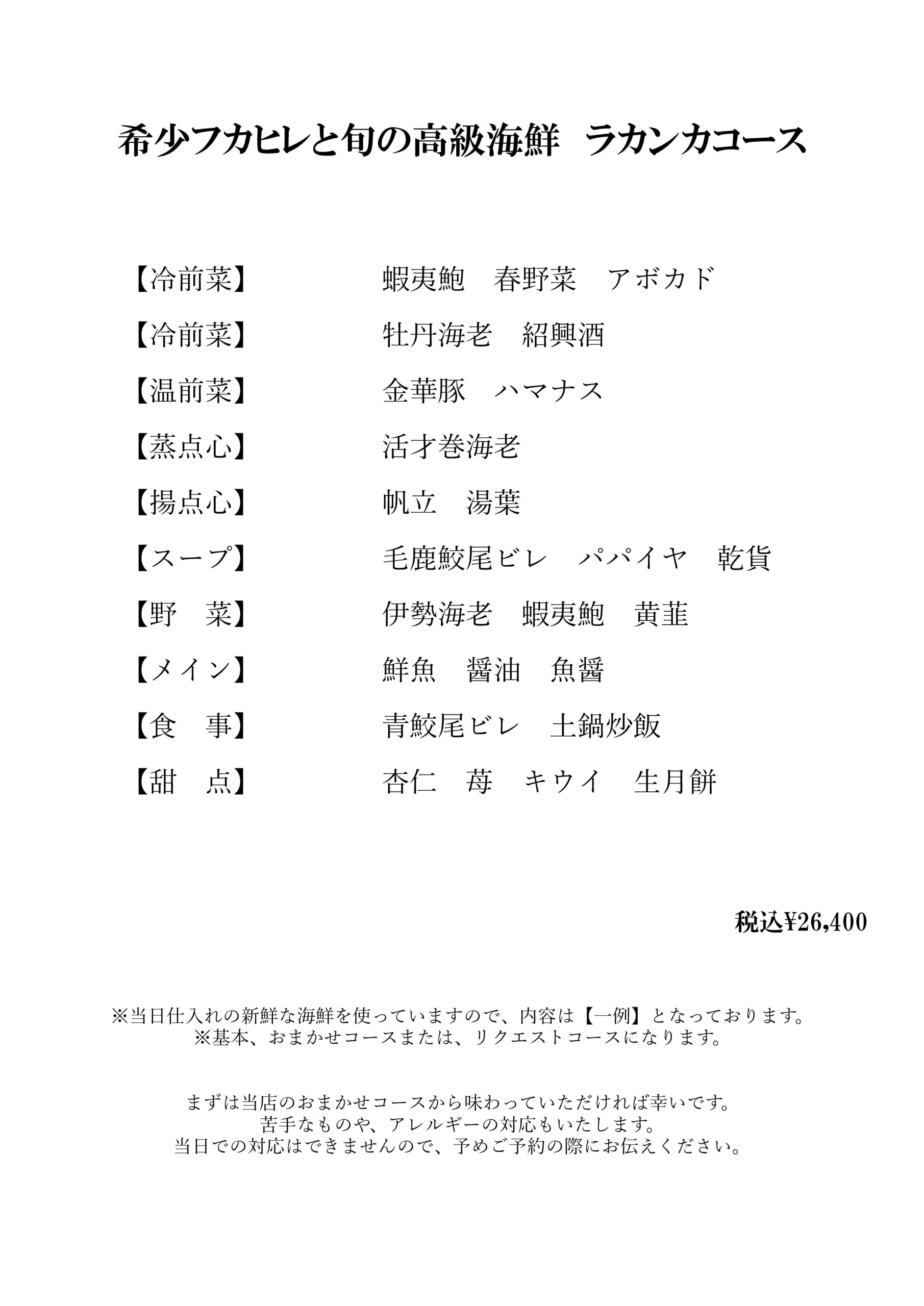希少フカヒレと旬の高級海鮮を使ったラカンカコース